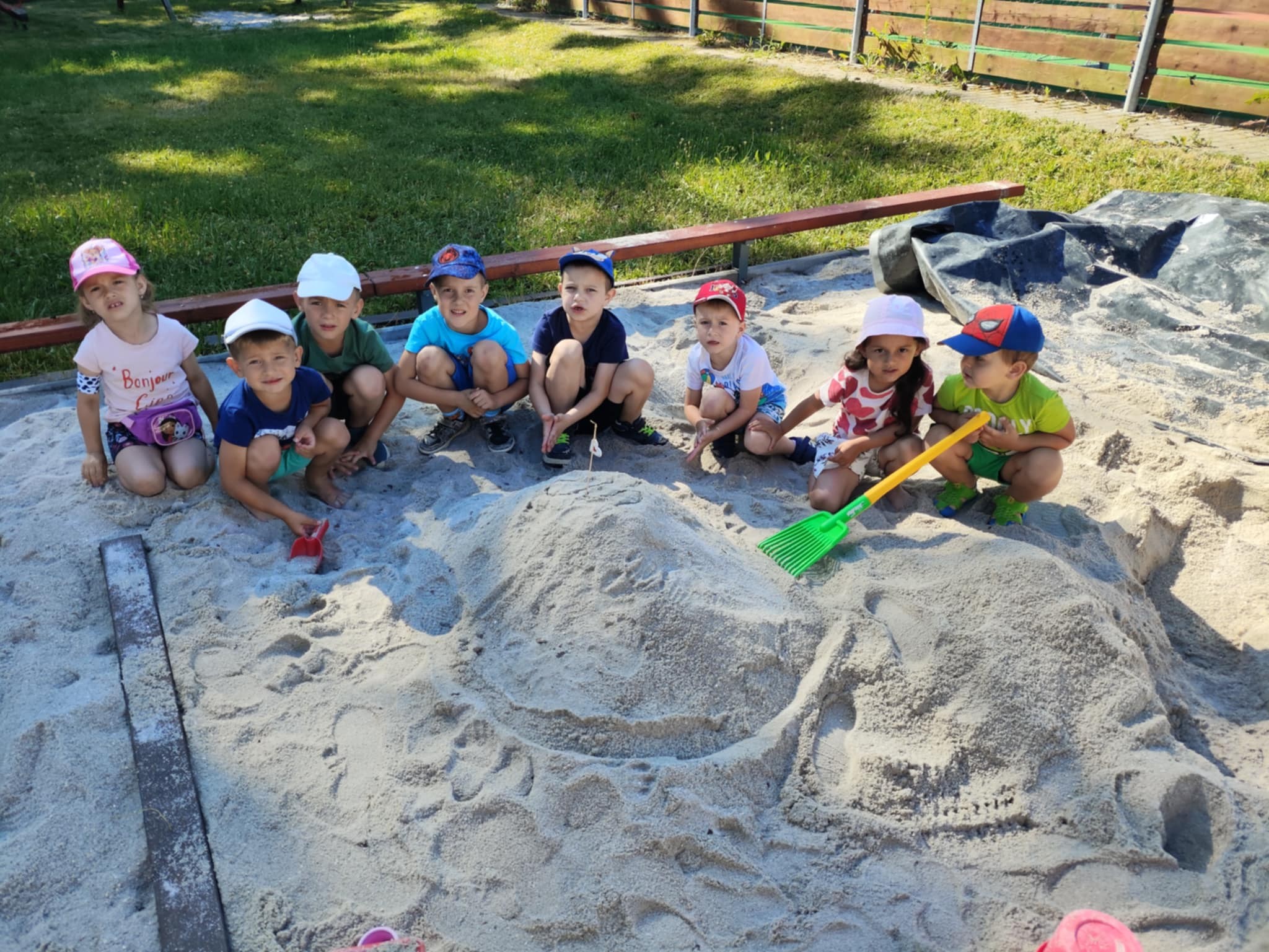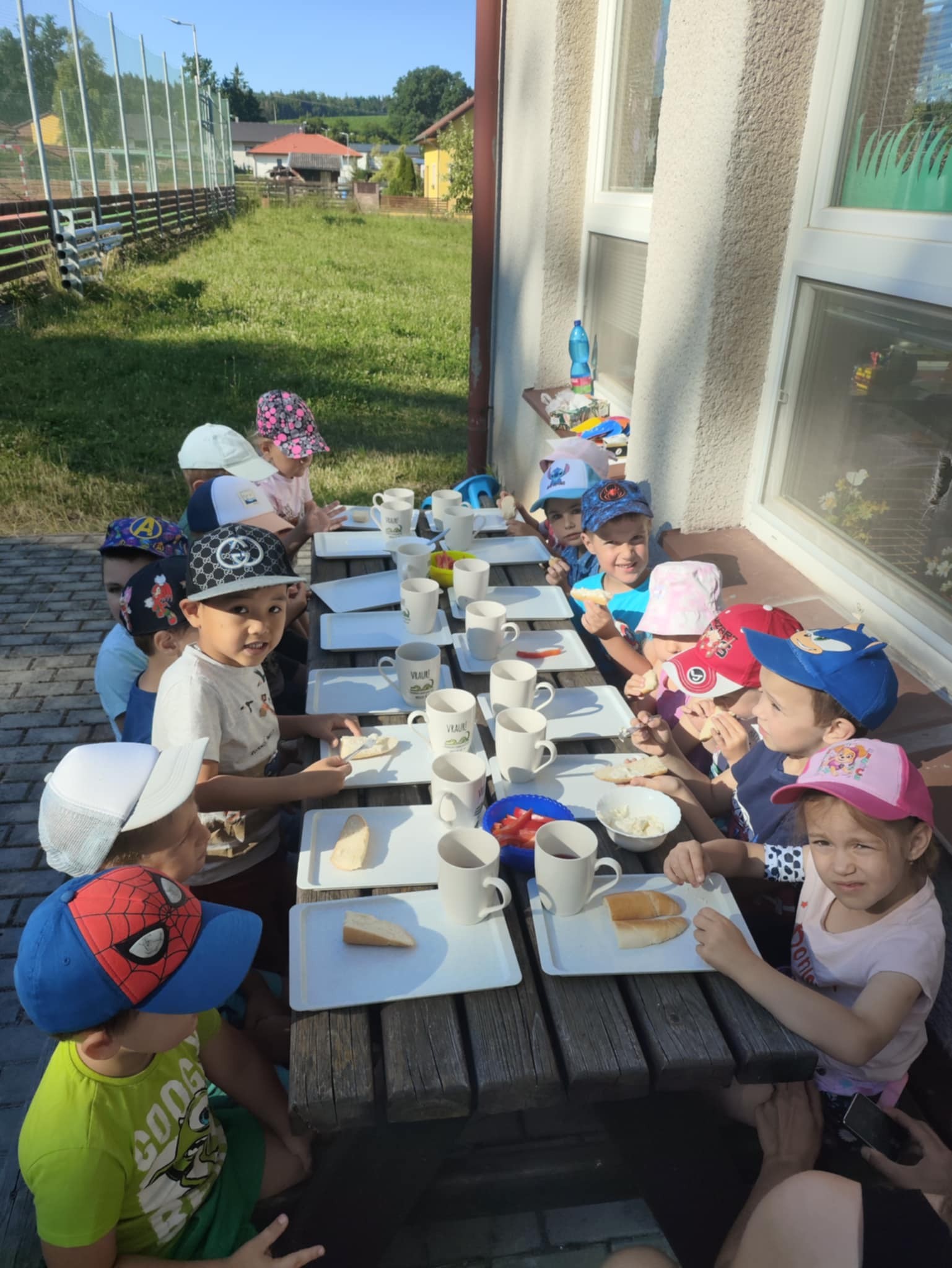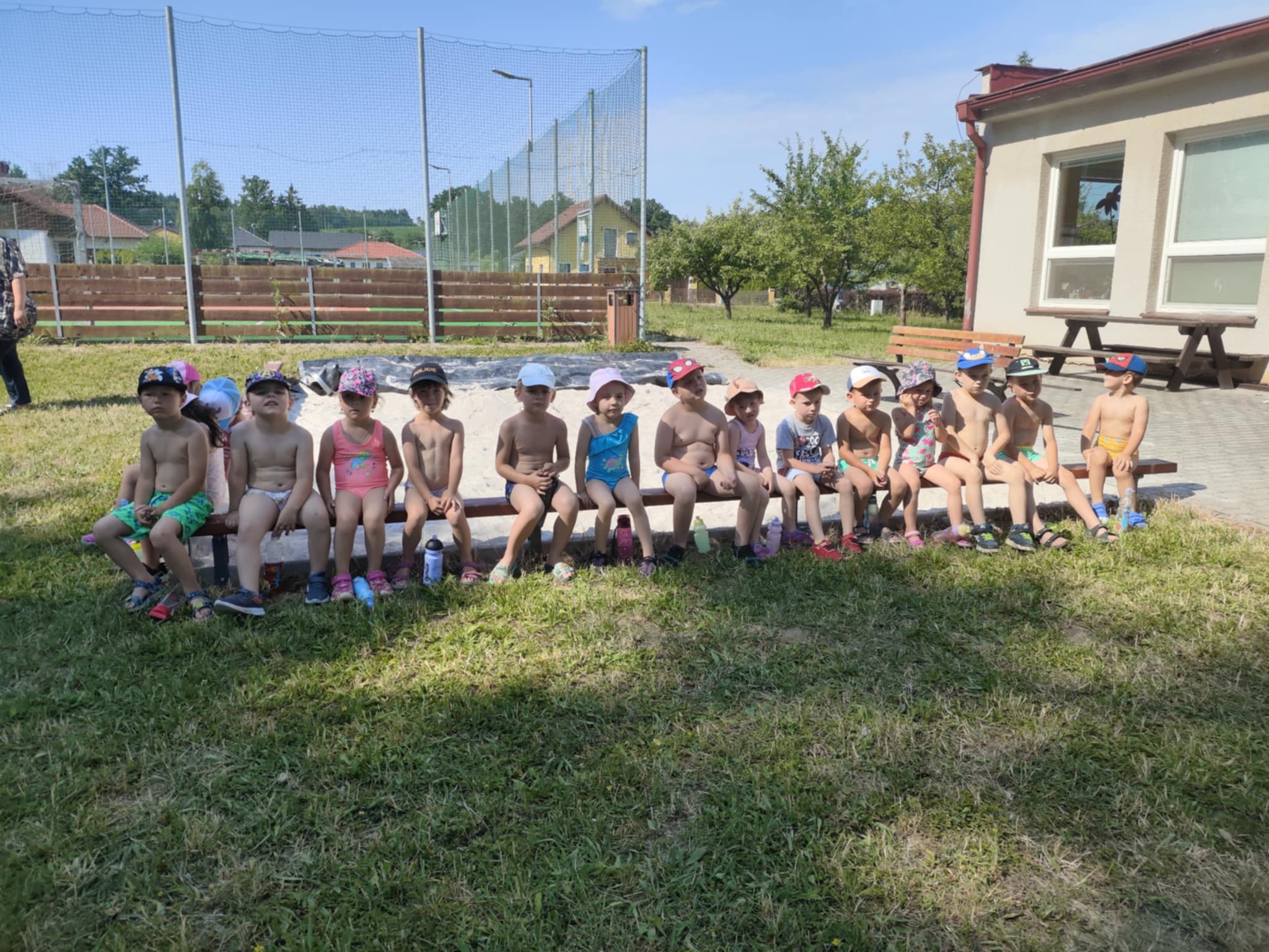 Teplé a slunečné počasí nám umožnilo trávit hodně času na školní zahradě. Děti si nejprve vyzkoušely stavbu písečných hradů, poté se s radostí zapojily do vodních hrátek – stříkaly vodu z pistolí, hrály si s oblíbenou stříkající beruškou a ochlazovaly se v letním horku. Velkým zpestřením byla i svačinka na zahradě, kterou si děti opravdu užily.