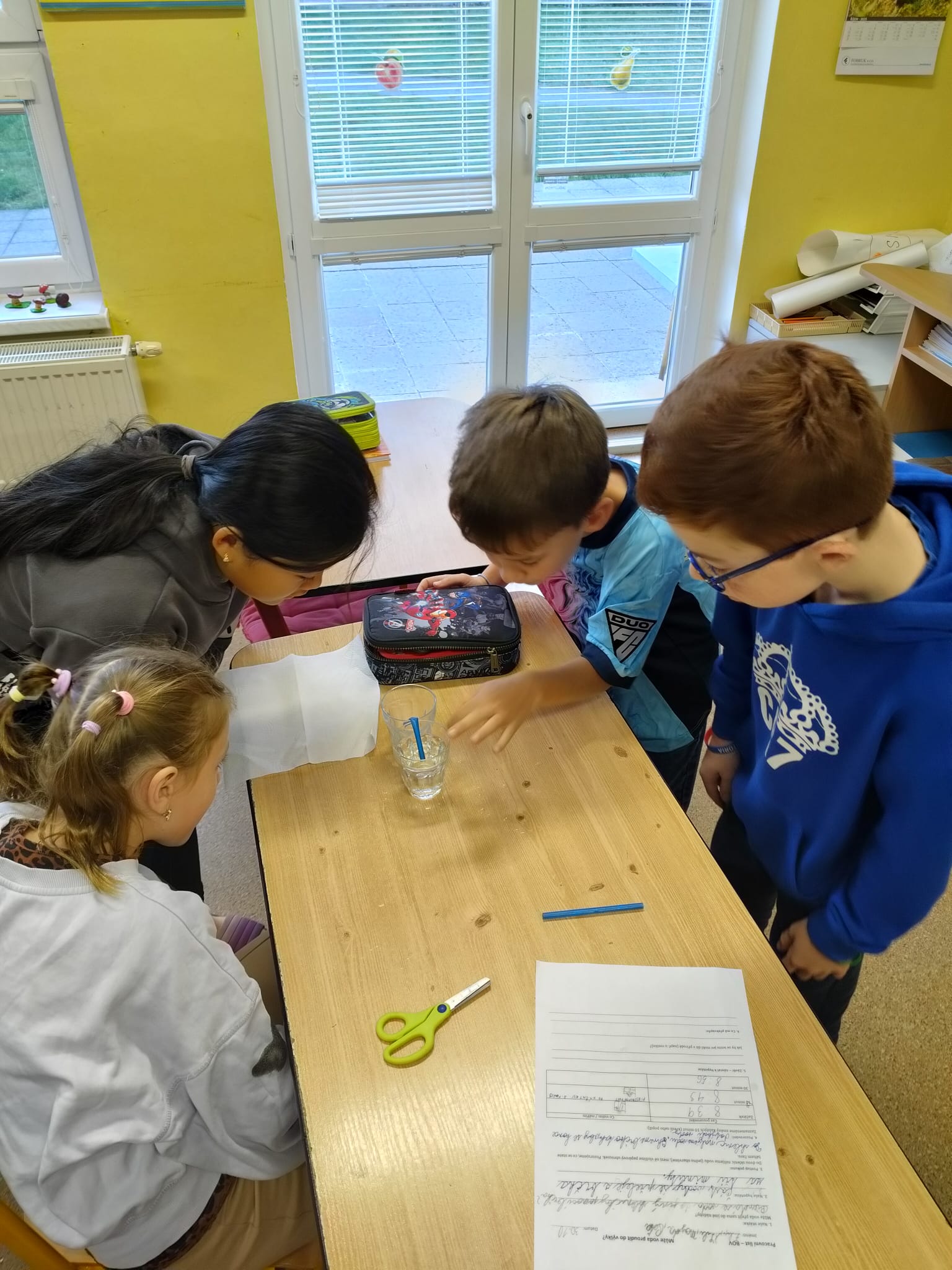 Nešlo ale jen o výsledek – důležité bylo i přemýšlení, pozorování a radost z objevování. Děti kreslily průběh pokusu, diskutovaly o tom, co se děje, a hledaly souvislosti s přírodou: „To je jako když rostlina nasává vodu ze země!“ zaznělo z jedné skupiny.