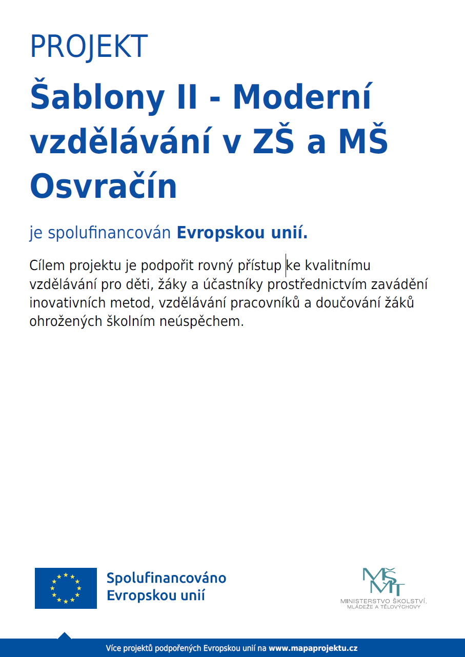 Šablony III. (MŠ+ZŠ) 9/2021 - 6/2023 ( Projektová výuka v MŠ, Nákup ICT techniky pro výuku informatiky v ZŠ, projektová výuka v ZŠ)