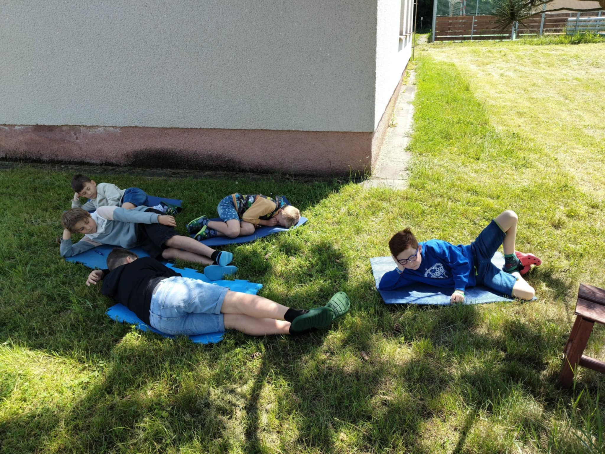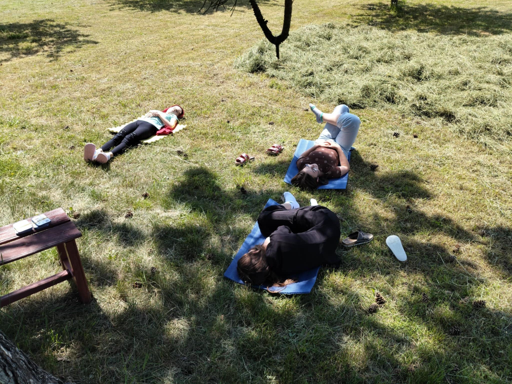 Téma hodiny tomu přálo – věnovali jsme se relaxační a aktivizační hudbě s důrazem na vliv přírody a tónů nástrojů na naše myšlení a prožívání. Vzali jsme tedy karimatky a vyrazili ven.