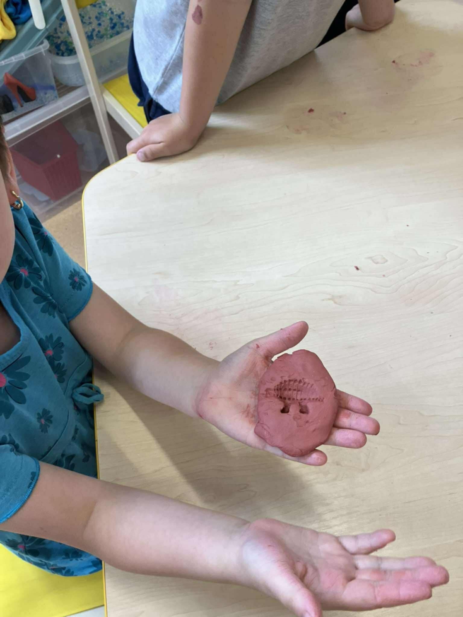 Velkým zážitkem pro všechny bylo „archeologické“ pátrání po dinosauřích kostech. Děti se proměnily v malé badatele, kteří opatrně odkrývali zkameněliny ukryté v písku. Ze samotvrdnoucí hmoty si pak každý vyrobil vlastní fosilii, kterou si mohl odnést domů.