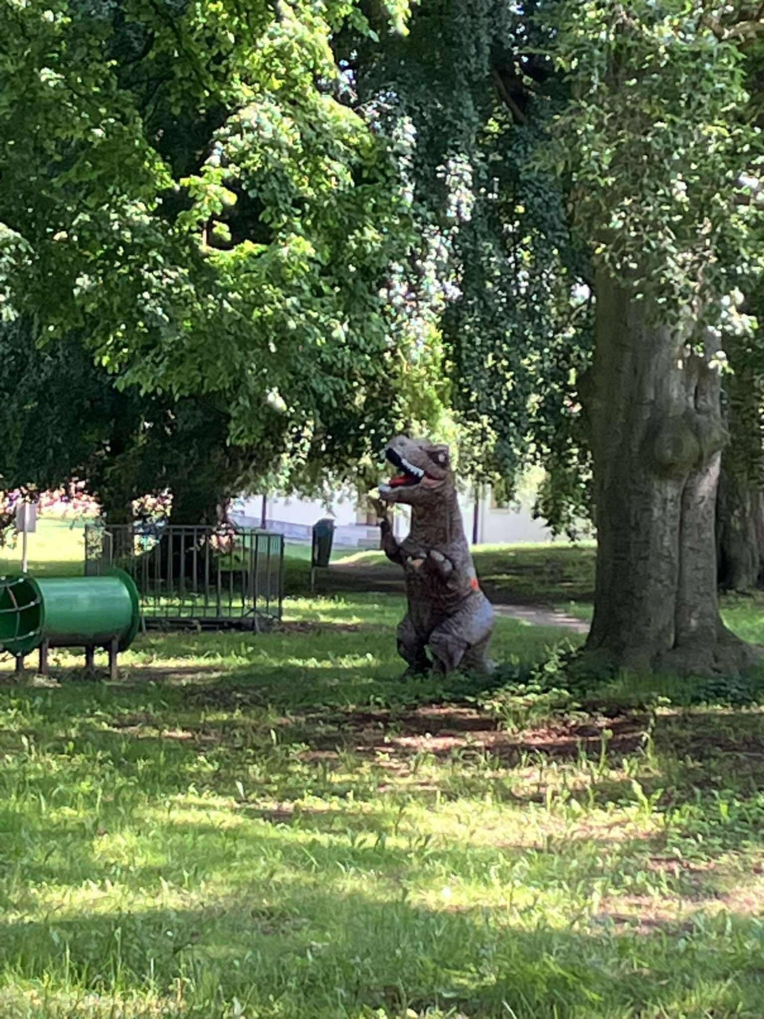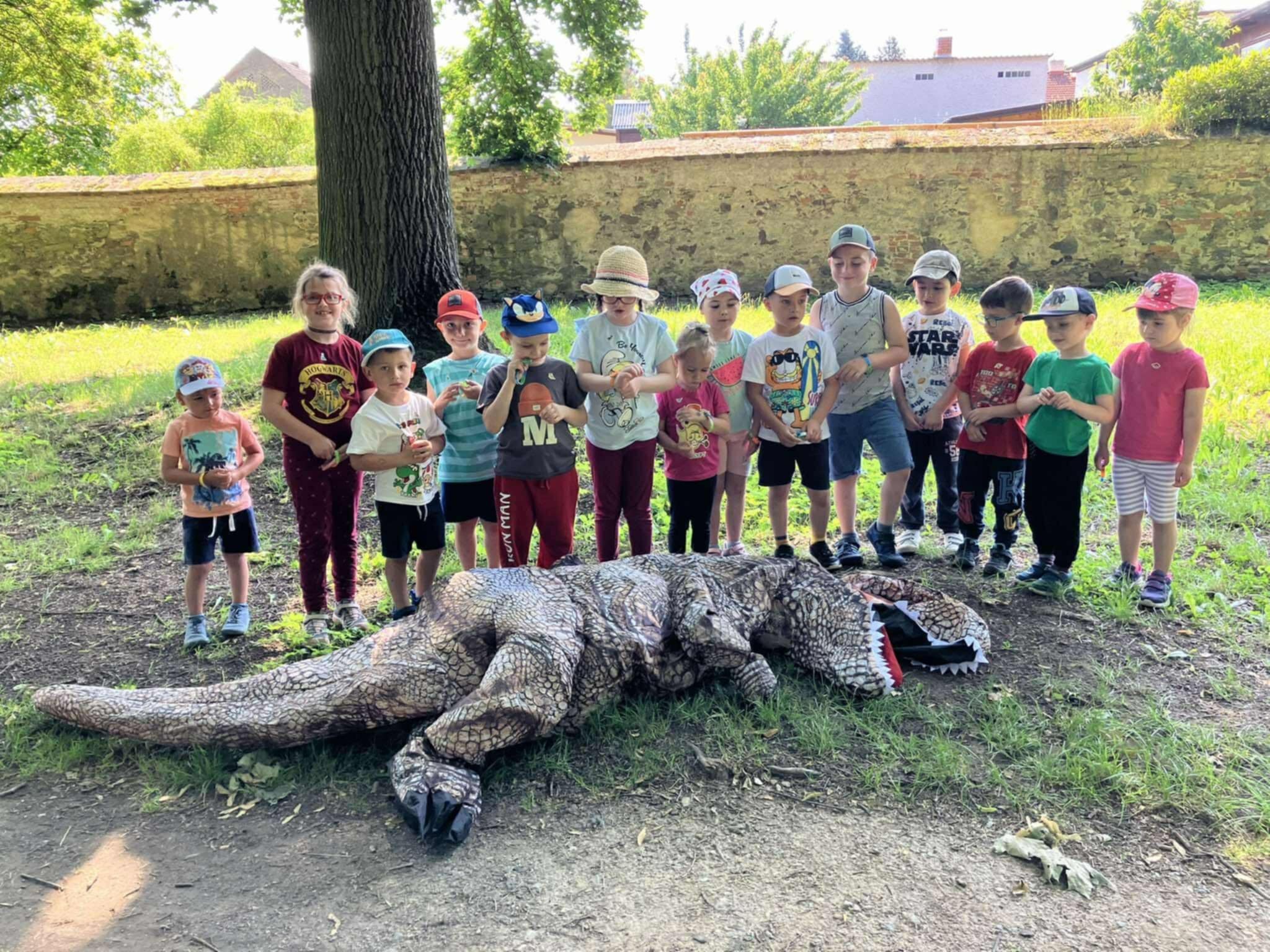 Celé dobrodružství zakončila výprava do parku, kde na děti čekalo velké překvapení – obří dinosaurus! Každé dítě od něj dostalo malou odměnu a společnými silami pak „vyhubily“ posledního tyranosaura Rexe.